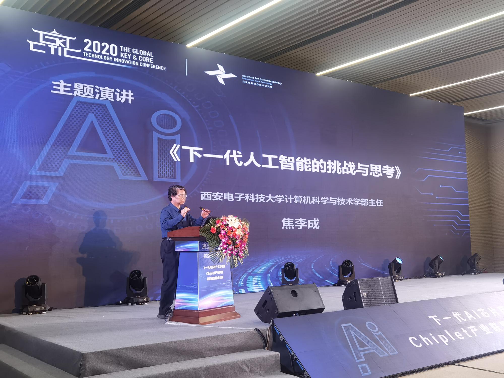 2020年9月15日下午,作为西安“全球硬科技创新大会”分论坛之一,由西安交叉核心院承办的2020“下一代AI芯片产业发布暨Chiplet产业联盟启动成立圆桌会议”在西安高新国际会议中心举行,计算机科学与技术学部主任、beat365官方网站焦李成教授受邀做了题为“下一代人工智能的挑战与思考”的报告。