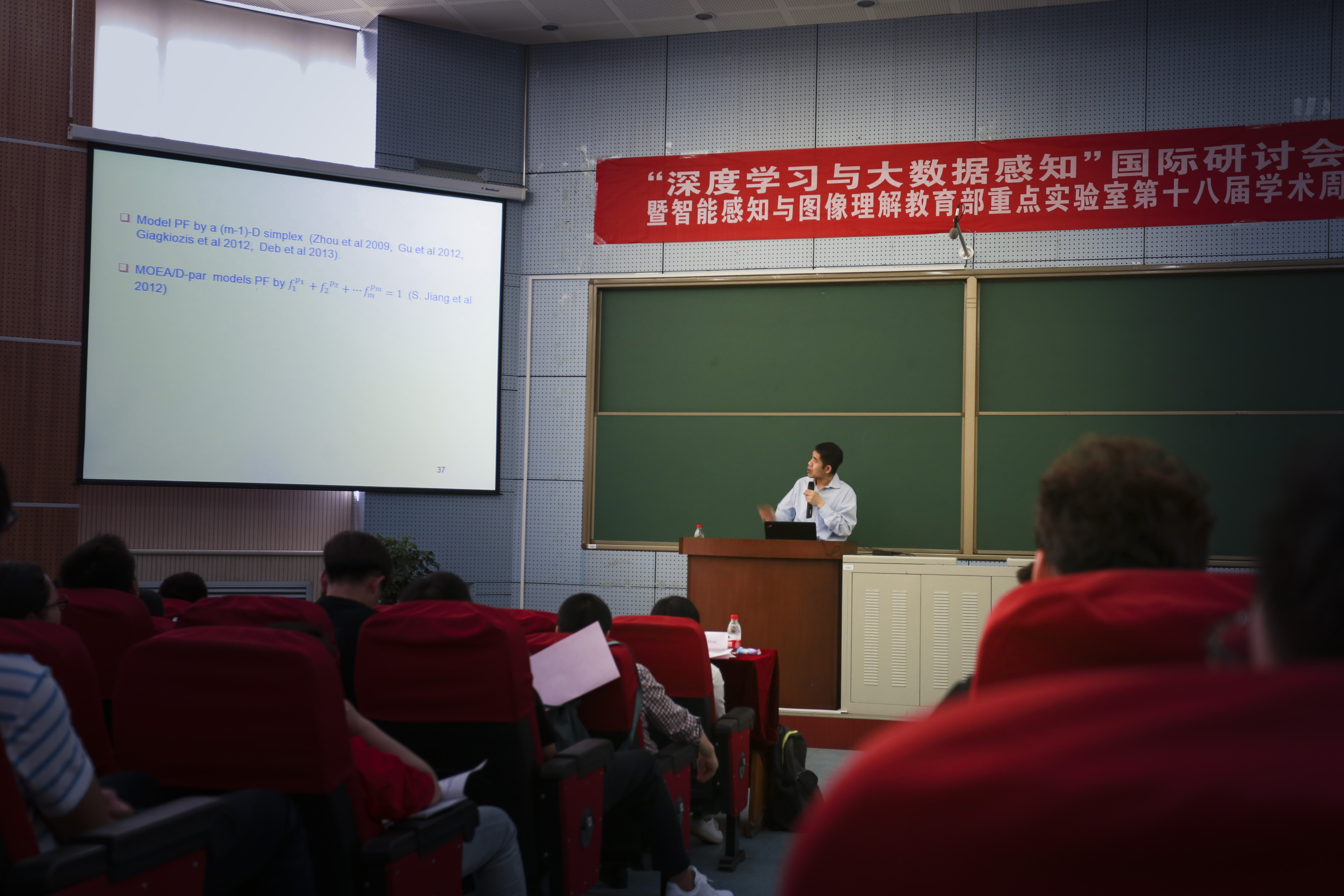 25日上午8:30分“深度学习与大数据感知”国际研讨会在beat365官方网站侯彪教授的主持下正式开幕,在25日到28日4天的学术活动中共有45场精彩的学术报告呈现,由领域顶尖专家学者、新锐企业领导者及刻苦钻研的学生共同展现了多样化的学术理念与实践应用,每场报告都座无虚席,走道也站满了学生,报告厅成为了一片浩荡的求知之海洋,每一朵浪花都饱含着新知与思考。45场报告涉及了“基于脑认知机理的条件证据理论及其深度学习方法”、“Multi-objective Bayesian Optimization”、“高分辨率图像智能处理技术”、“Scene Representation and Classification from Remote Sensing Images Based on Deep Learning”、“深度学习影像感知及解译”、“数据驱动的进化优化”、“面向机器人灵巧操作的认知传感与大数据处理”、“大数据、云计算、物联网-计算智能的研究前沿与应用”、“变分贝叶斯联合优化及应用”、“头脑风暴优化算法”、“Online Ensemble Learning of Class Imbalance Data”、“Current Hot Topics in Many-Objective Optimization”、“Online Growing Neural Gas for Anomaly Detection in Changing Surveillance Scenes”、“类脑计算的理念与实践”、“复杂场景中人群行为的研究及其应用”、“Remote Sensing and Media”、“协同过滤算法关键性技术及其稀疏性研究”、“概率分类学习”、“无人车场景计算与自主运动”、“大数据时代模式识别的机遇与挑战”、“语义通讯”、“What Can Evolutionary Algorithms Do on Complex Network”等各科研领域与课题。
