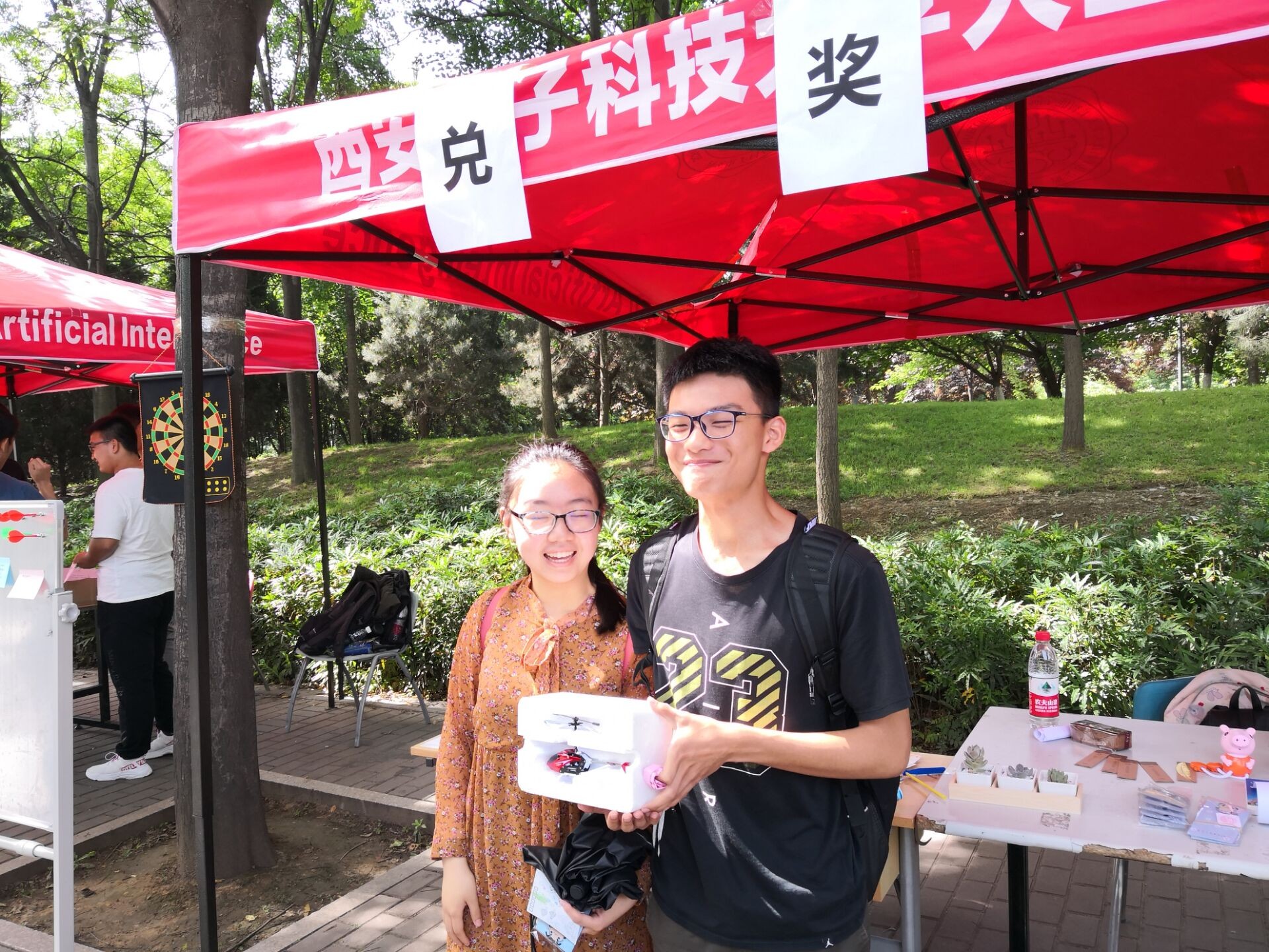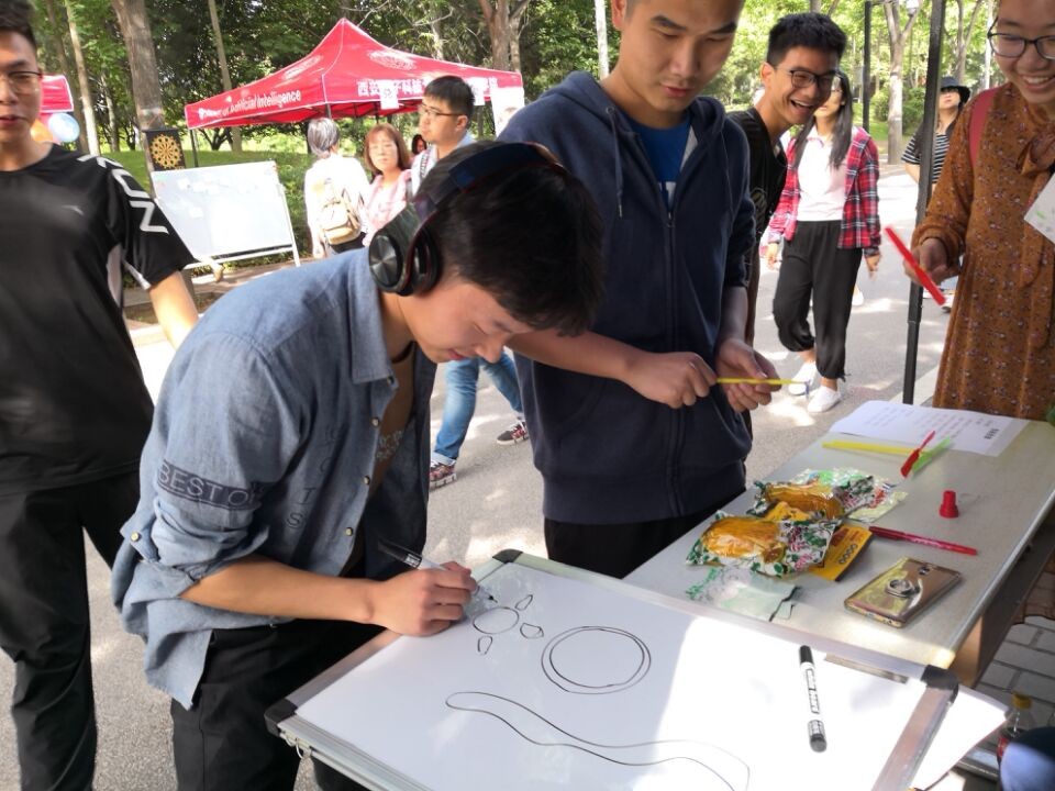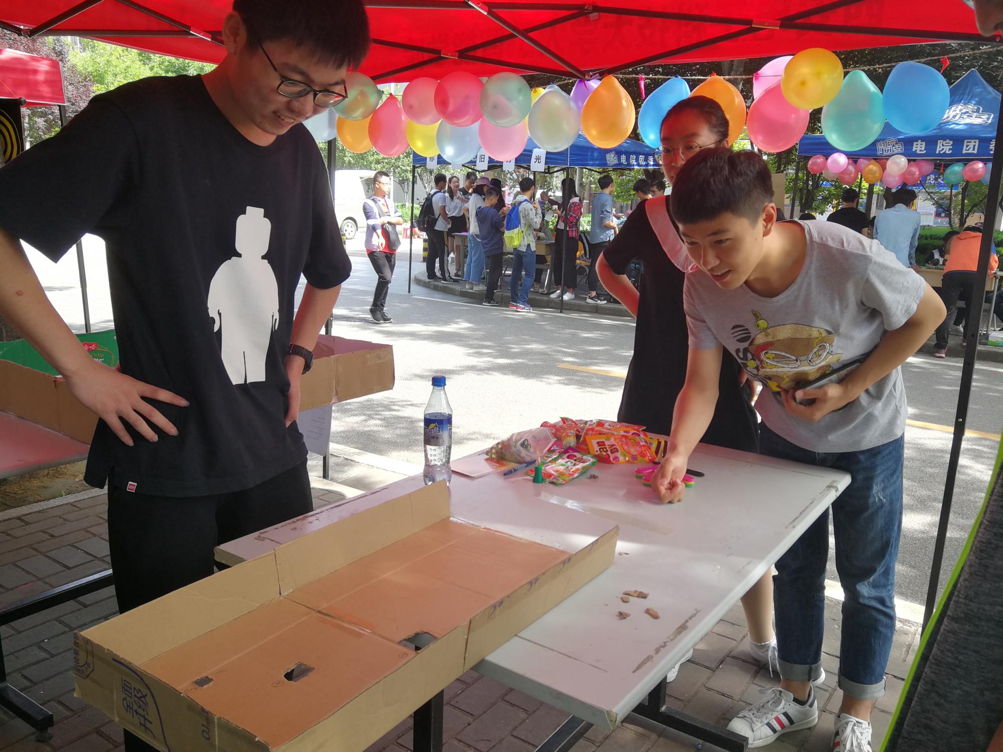 活动现场准备了打弹珠、悠悠球、纸飞机、游戏王、你画我猜以及翻花绳等多项具有典型童年色彩的游戏,参与戏即可获得印满童年记忆的小零食或小玩具。游戏采取积分制,汇总所参与的各项游戏积分可在兑奖区兑换奖品,吸引了大量路过的同学驻足、参与。