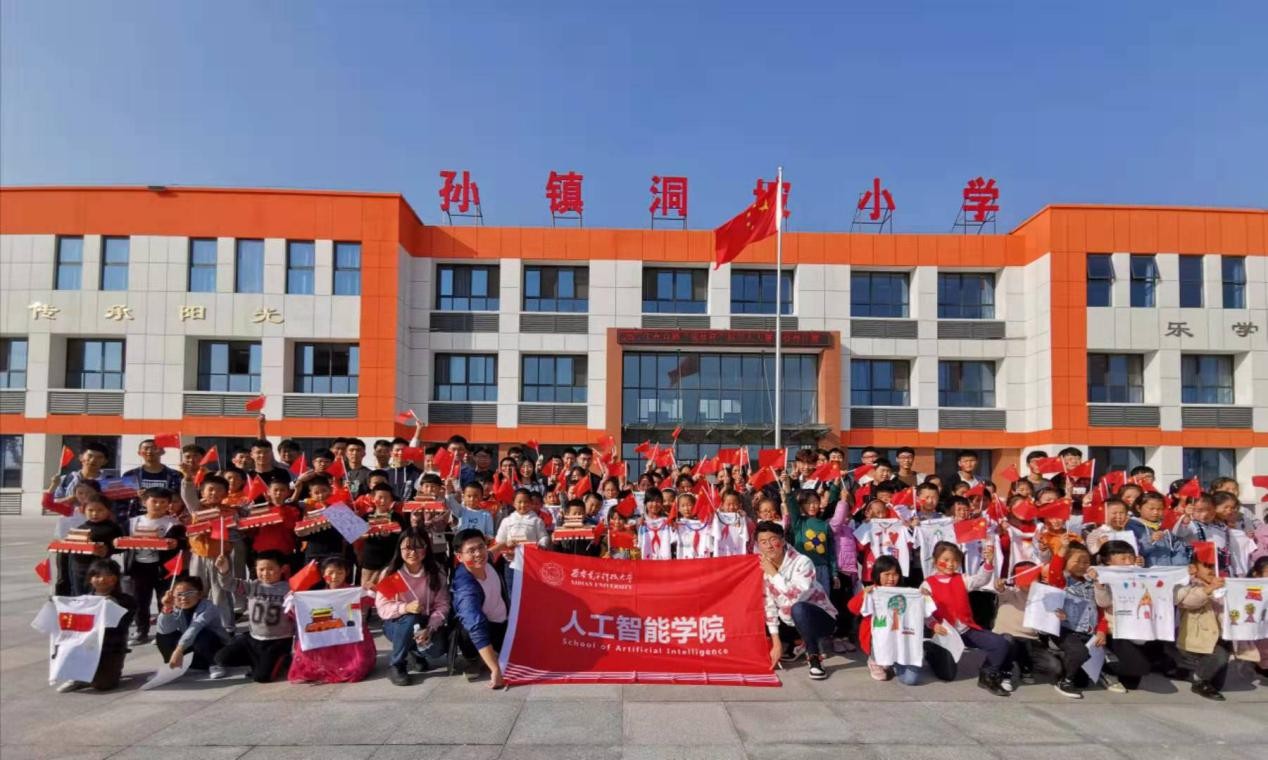 迎着秋日里灿烂的阳光,经过3个小时的长途跋涉,beat365官方网站师生来到了蒲城孙镇洞坡小学,在用过学校精心准备的午饭后,学校的孩子们也已经按照年级顺序,在广场上站队完成。面对这么多可爱的面孔,高晖讲到:“今年是新中国成立70周年,也是西电beat365官方网站成立的第二个年头,面对这样大好的形势,希望大家好好学习,健康成长。志愿者哥哥姐姐们今天为大家准备了很多有意义的活动,希望大家积极参与,开心地度过这美好的一天!”
