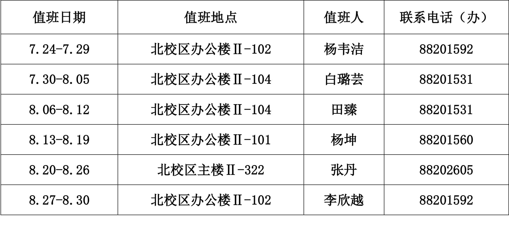 【暑期值班】beat365官方网站暑假值班安排表
