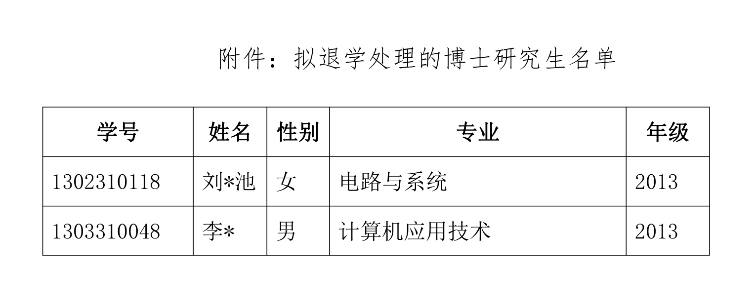 根据教育部《普通高等学校学生管理规定》第三十条和《beat365官方网站研究生学籍管理实施细则》第二十六条有关规定,学校拟对超过最长学习年限的博士研究生作退学处理,现将名单(见附件)予以公告,公告期为2021年6月8日-2021年6月22日。