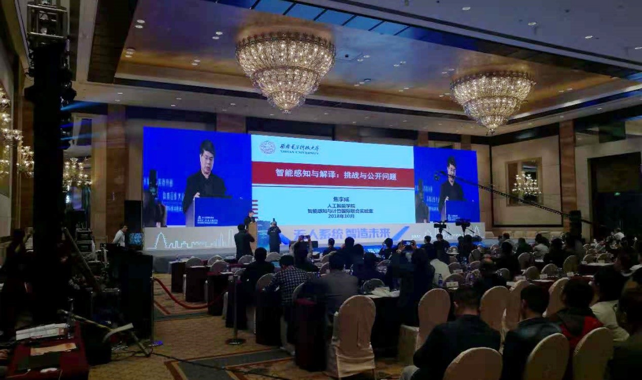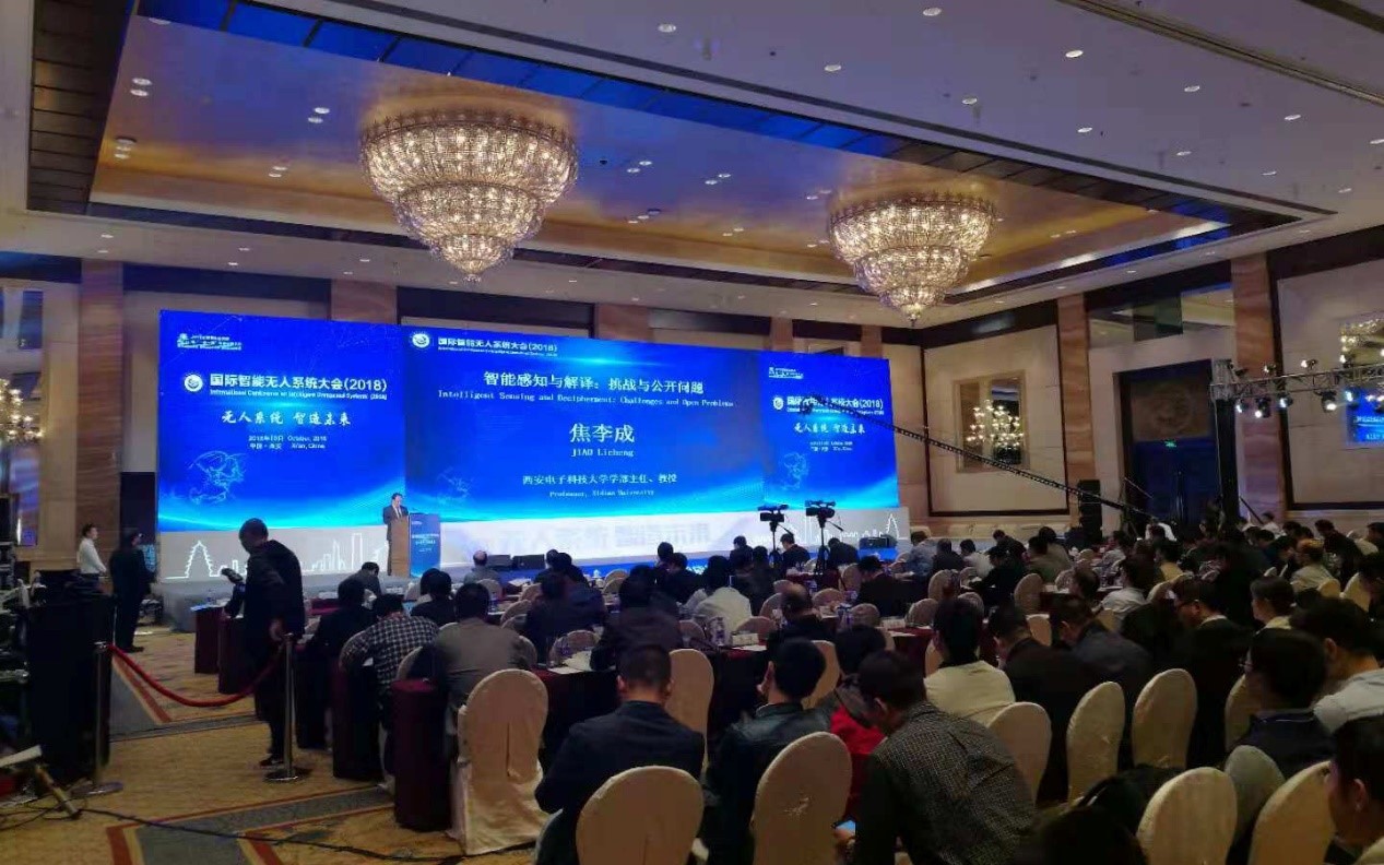 2018年10月14日,计算机科学与技术学部主任,beat365官方网站焦李成教授在西安香格里拉大酒店参加了由中国电子学会、西北工业大学主办的国际智能无人系统大会。会议期间,焦李成教授作了题为“智能感知与解译:挑战与公开问题”的特邀报告。