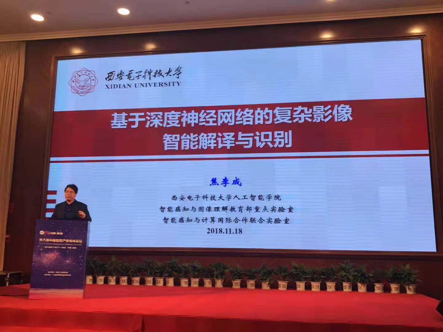 2018年11月18日下午,计算机科学与技术学部主任、beat365官方网站焦李成教授在成都龙之梦国际会议中心参加了由中国人工智能学会主办的人工智能大讲堂,并作了题为“基于深度神经网络的复杂影像智能解译与识别”特邀报告。