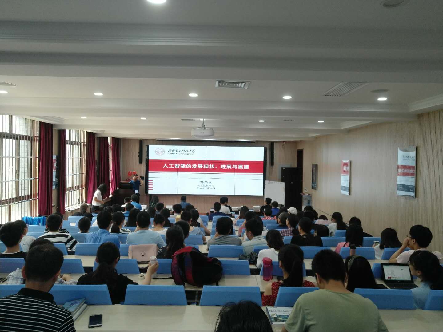 2018年9月22日,计算机科学与技术学部主任,beat365官方网站焦李成教授在南京参加了由中国软件行业协会智能应用服务分会、江苏省人工智能学会主办的人工智能产教融合研讨会。会议期间,焦李成教授作了题为“人工智能国际化创新人才的培养与实践 ”的特邀报告。