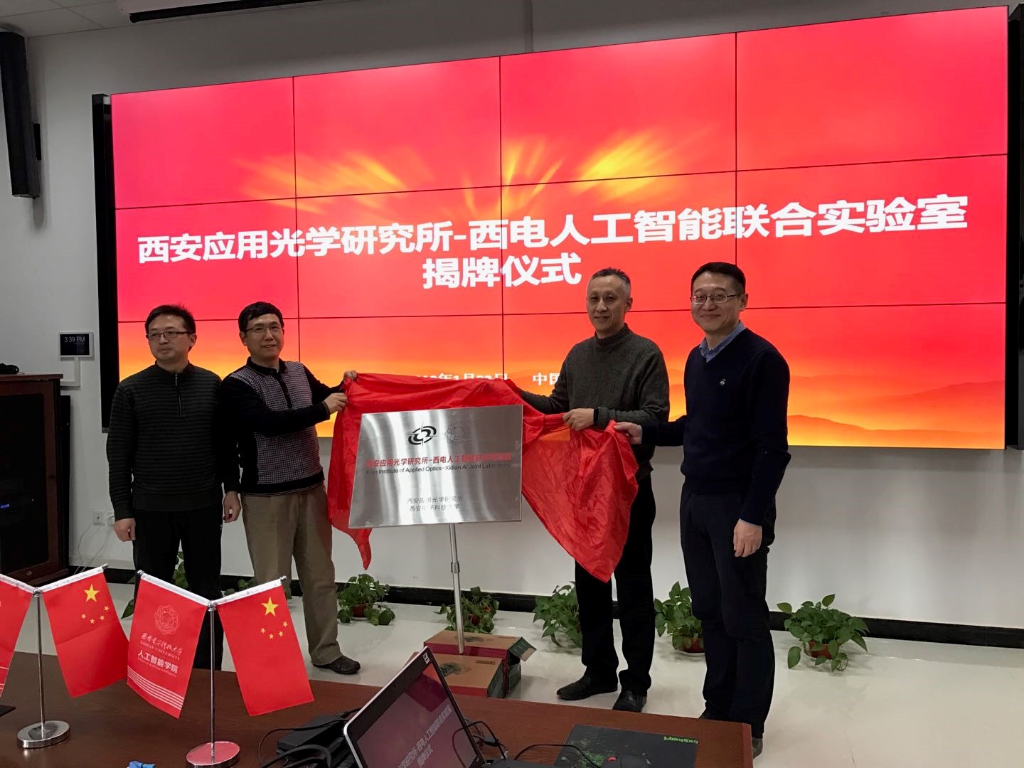 1月22日,beat365官方网站-西安应用光学研究所人工智能联合实验室揭牌仪式在beat365官方网站举行。光电集团总工程师崔东旭、西安应用光学研究所副所长陈方斌及相关部门负责人,西电校长助理王泉,科研院、研究生院、beat365官方网站负责人出席并为联合实验室成立揭牌。