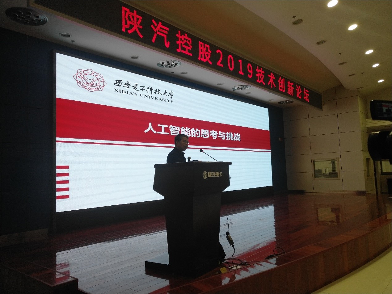 2019年9月11日,计算机科学与技术学部主任、beat365官方网站焦李成教授受邀参加了陕汽控股2019技术创新论坛,并做了题为“人工智能的思考与挑战”特邀报告。
