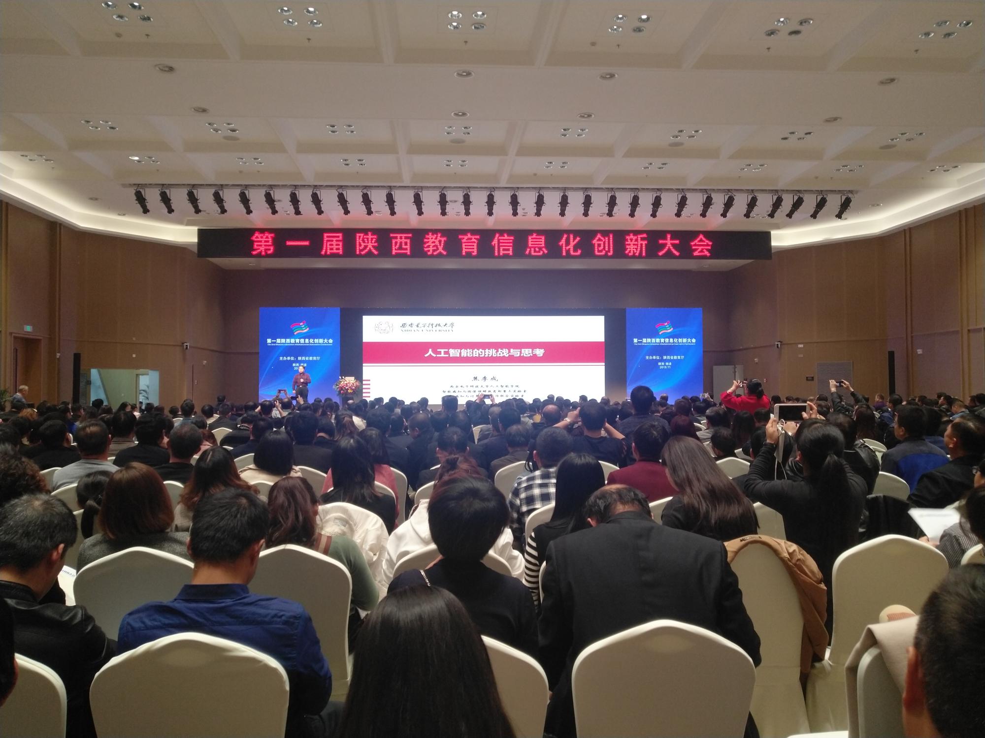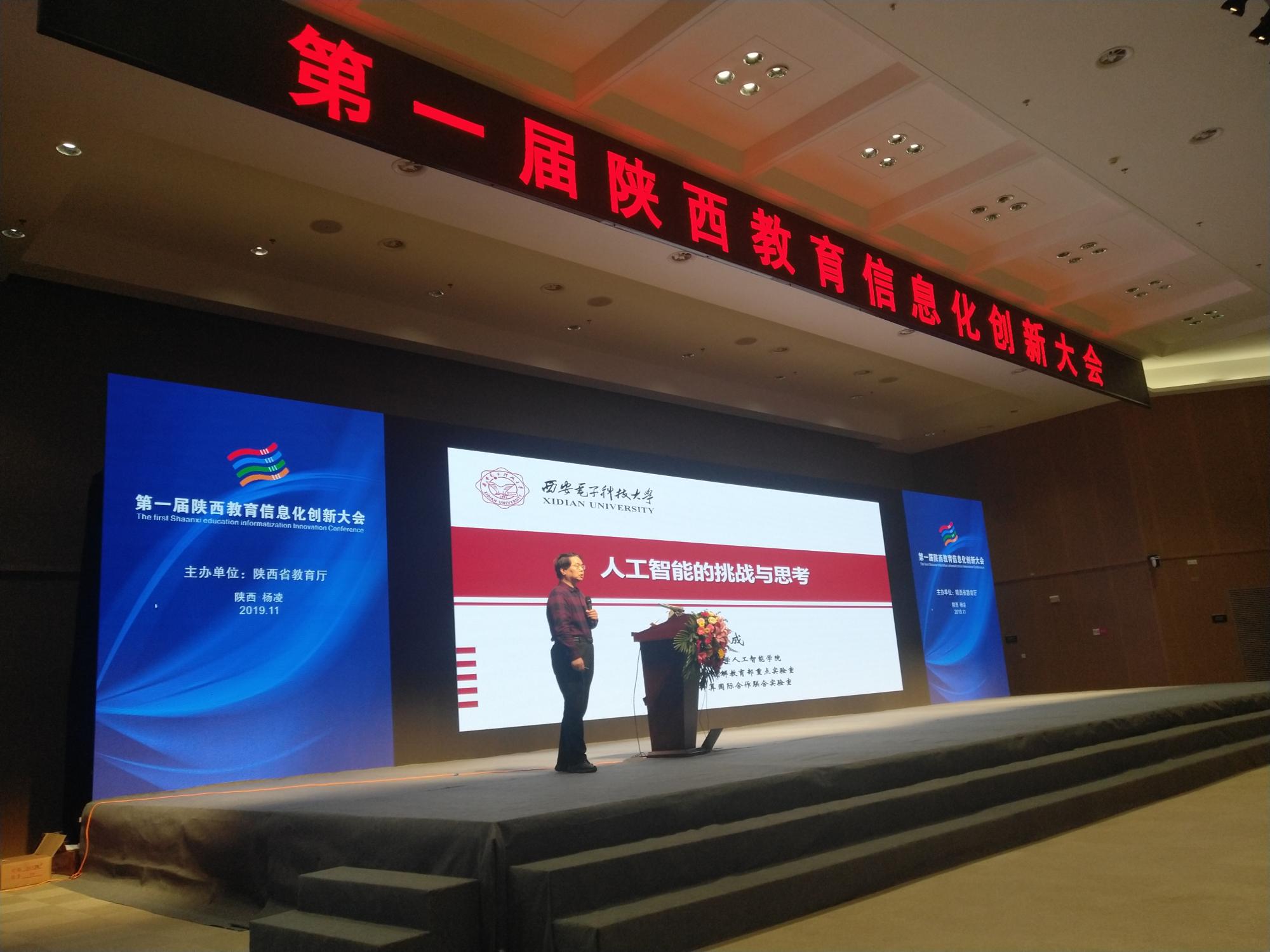 2019年11月8日,计算机科学与技术学部主任、beat365官方网站焦李成教授受邀在杨陵参加了第一届陕西教育信息化创新大会,并做了题为《人工智能的挑战与思考》的特邀报告。据悉,此次大会现场约有5000余人参会,网络视频直播5万余人参会。