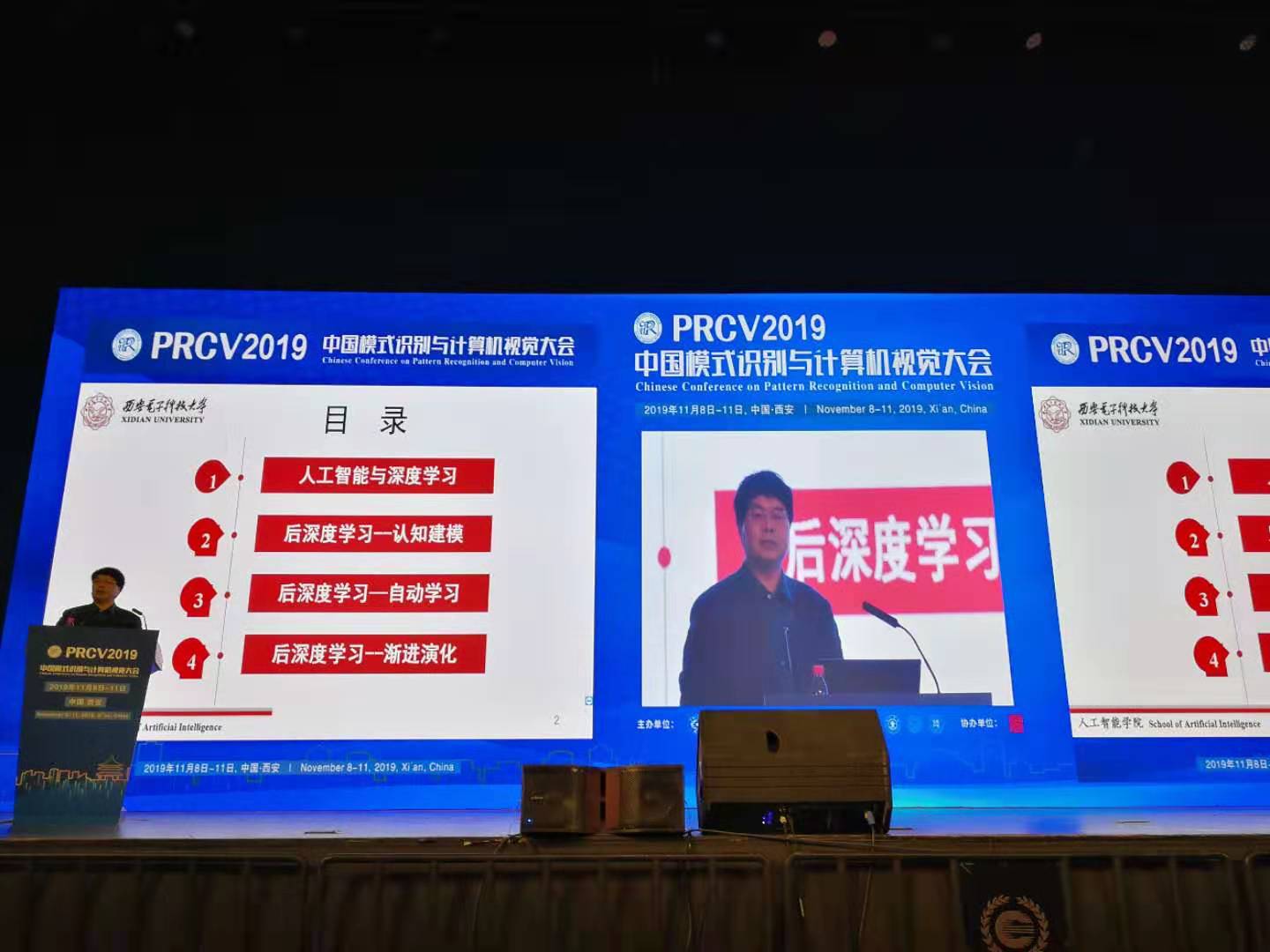 2019年11月9日,计算机科学与技术学部主任、beat365官方网站焦李成教授受邀参加第二届中国模式识别与计算机视觉大会(PRCV 2019),并在大会作了题为《后深度学习的挑战与思考》的主旨学术报告,报告中非常深刻的阐述了表征学习和深度学习概念与思考。据悉,本次大会注册人数超1750人,合计近2000人参会,盛况空前。