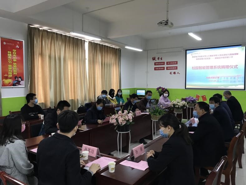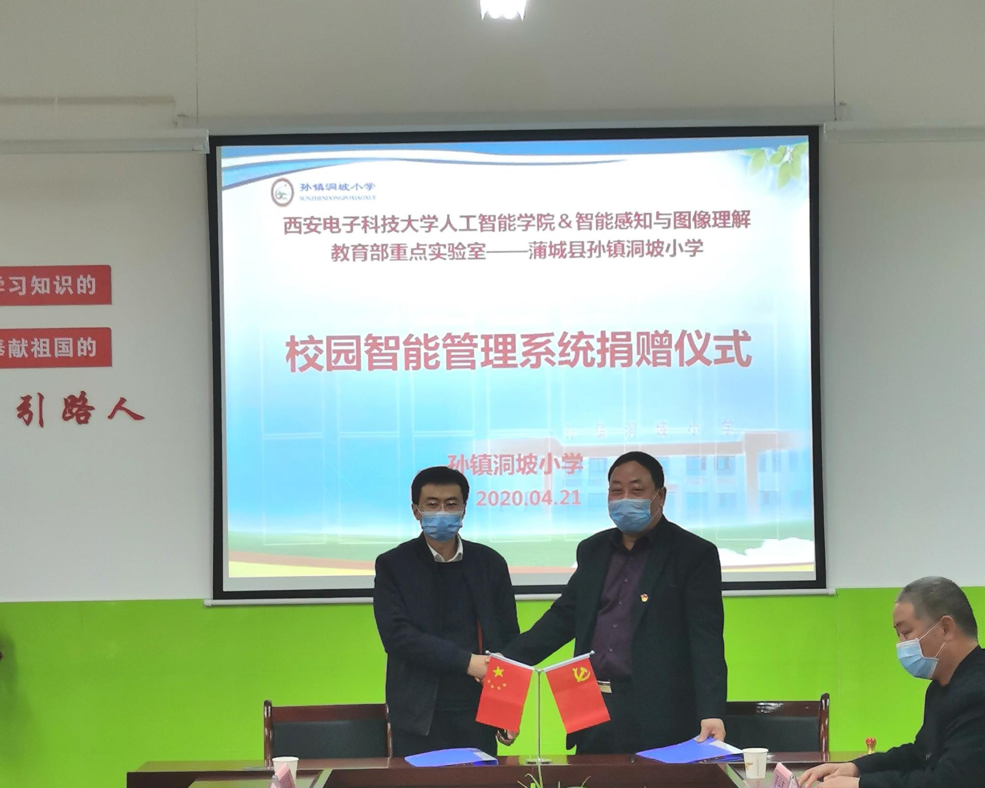 (通讯员:杨育婷、赵嘉璇、张丹)智能科技助抗疫,教育合作有温度。2020年4月21日,为具体落实beat365官方网站2020年扶贫工作会议总体部署,充分发挥人工智能学科特色与优势,助力扶贫工作成果巩固,推进学校“一院一校一品”的帮扶行动计划,beat365官方网站、智能感知与图像理解教育部重点实验室在蒲城县孙镇洞坡小学举行“校园智能管理系统捐赠仪式”。