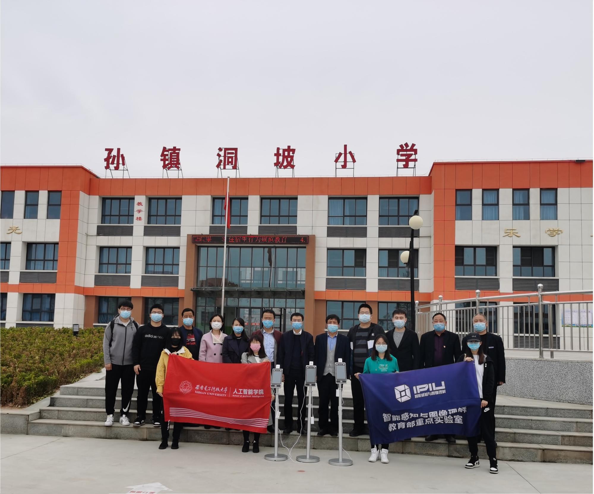 该项目的实施得到了智能感知与图像理解教育部重点实验室主任焦李成教授以及侯彪教授、吴建设教授的支持和指导,由孙其功博士带领吴兆阳、杨育婷、高剑、赵嘉璇、邵奕霖、胡冰楠等研究生组成研发团队,共同努力完成了该项目系统的紧急研发任务。4月15日学院专程赴孙镇洞坡小学对接项目实施落地,共同确定了学生复学返校后的项目实施方案。