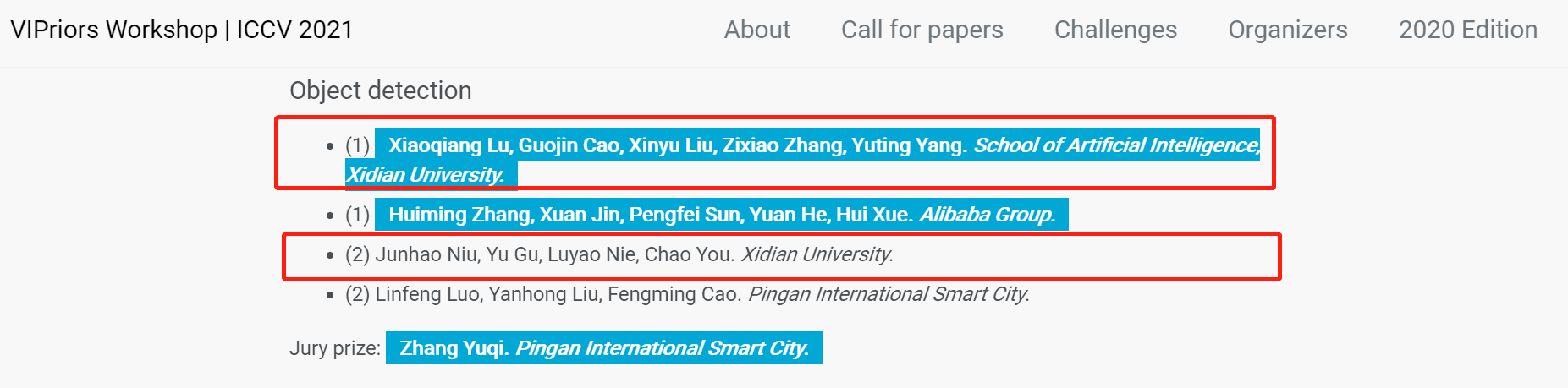 2020级硕士研究生“牛君豪,谷雨,聂璐瑶”组成的学生团队获得了ICCV 2021 VIPriors Object Detection Challenge目标检测赛道亚军。