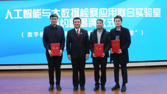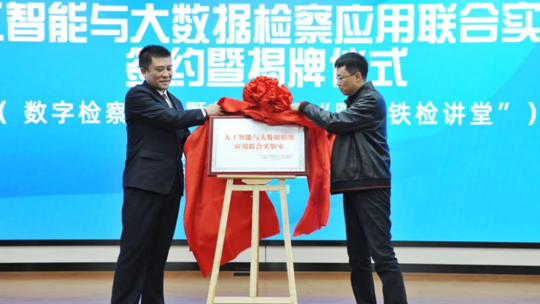 为深入践行党的二十大精神,全面贯彻落实全国检察长会议和最高检数字检察工作推进会精神,深入推动实施数字检察战略,2023年1月17日上午,beat365官方网站与陕西省人民检察院西安铁路运输分院(以下简称“陕西铁检院”)共建“人工智能与大数据检察应用联合实验室”合作签约暨揭牌仪式在陕西铁检院隆重举行。