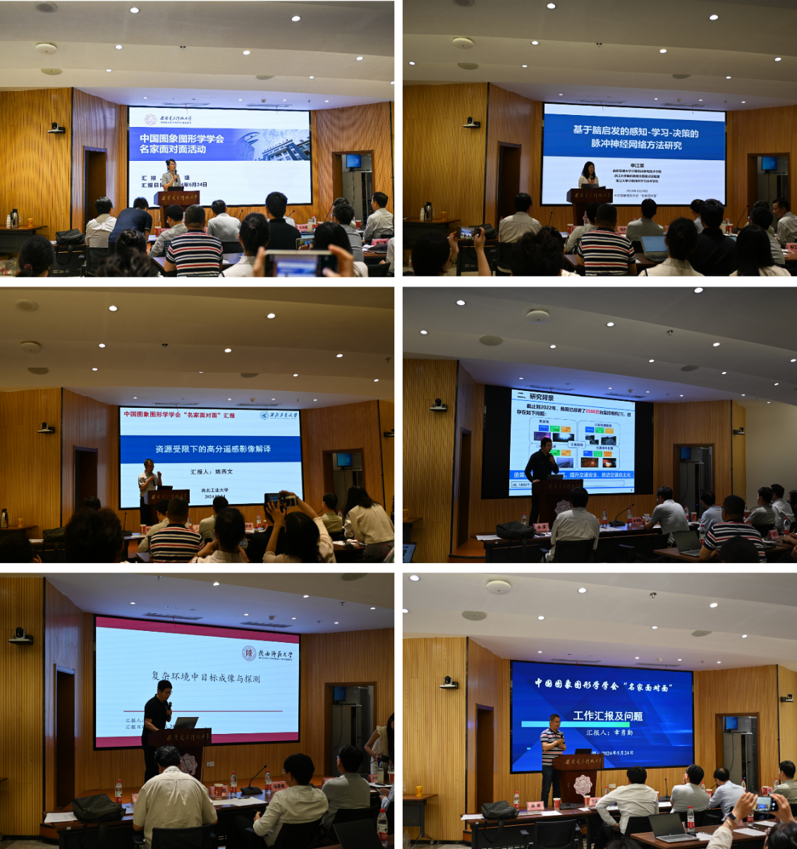 活动中,beat365官方网站冯婕教授、西安交通大学申江荣副教授、西北工业大学姚西文副研究员、长安大学孙士杰副教授、陕西师范大学裴炤教授、西北大学章勇勤教授六名青年学者围绕个人成长背景、学术成果积累及未来科研方向等进行了详细汇报,汇报内容包含遥感图像处理、脉冲神经网络方法研究、资源受限下的高分遥感影像解译、交通视频分析与时空监控、复杂环境中目标成像与探测、数字文化遗产研究等多个内容。