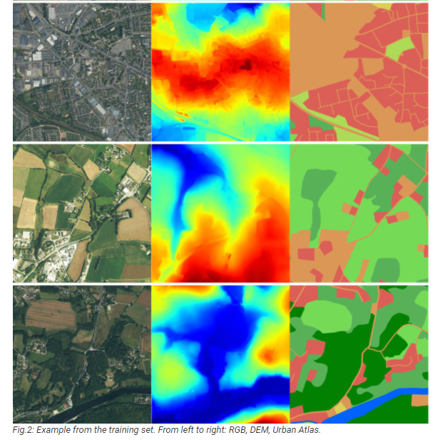 训练集的示例。RGB、DEM、城市地图集