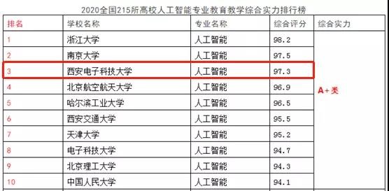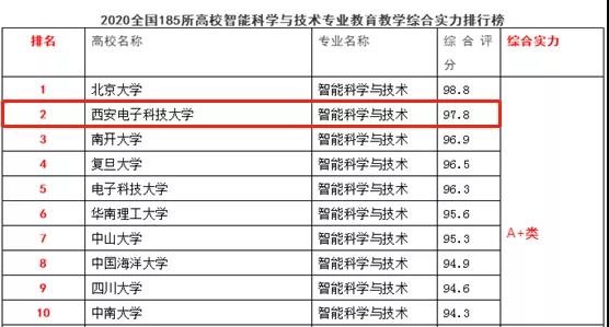 全国高校人工智能与大数据创新联盟公布的“智能科学与技术”专业及“人工智能”专业教育教学综合实力排行榜中,我校分别位列“智能科学与技术”专业排行榜的第二名及“人工智能”专业排行榜的第三位。