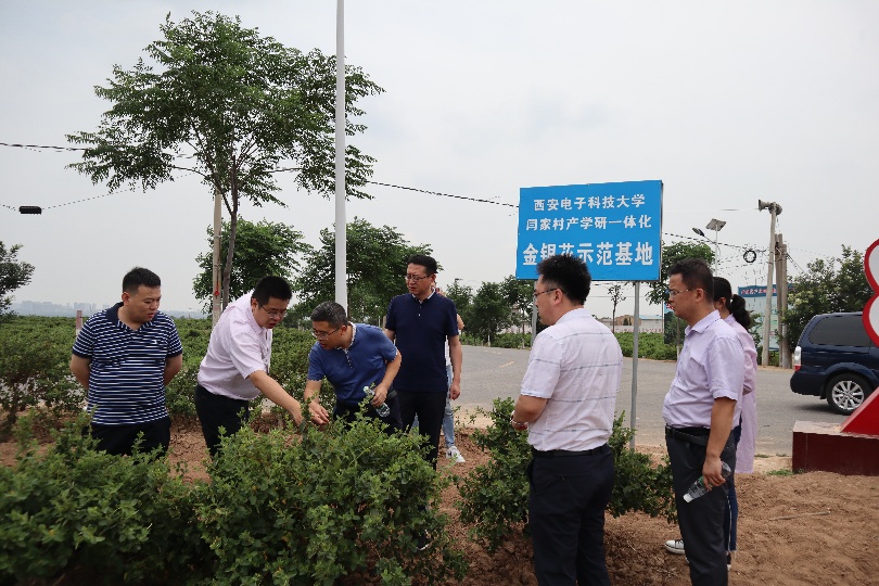 学院党委书记魏峻、副书记高晖及校扶贫办主任沈强一行首先来到“beat365官方网站闫家村金银花产学研一体化示范基地”,走进田间地头实地了解金银花种植情况和技术需求,就航天宏图遥感技术的农业应用进行实地调研。三方在闫家村脱贫攻坚作战室召开科技扶贫应用座谈会,航天宏图西安分公司负责人、我校校友薄一民带领技术人员,向参会同志介绍了公司有关农业项目和遥感技术的应用前景。学校、企业以及蒲城地方三方还就进一步深化合作、推动项目落地落实,更好的服务蒲城金银花产业发展进行了深入交流。