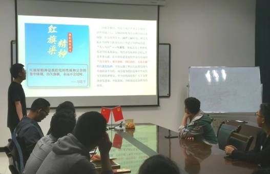 本次研讨会在党支部书记宋威对红旗渠精神的介绍下开始。红旗渠,位于河南省林州市(原林县),是三十万林县人为了改变当地世世代代贫穷缺水的命运而苦干十年创下的人间奇迹。二十世纪六十年代,林县人民采取勤俭建渠、艰苦创业的方针,不依赖国家,不等不靠,在万仞壁立、千峰如削的太行山上建成了红旗渠,锻造了“自力更生、艰苦创业、团结协作、无私奉献”红旗渠精神。