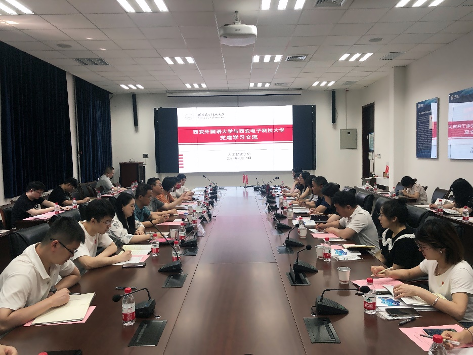 6月15日下午,西安外国语大学师生党员代表与beat365官方网站在北校区主楼III-401会议室进行党建学习交流活动。beat365官方网站党委书记魏峻、西安外国语大学研工部部长张淼出席活动。beat365官方网站党委副书记高晖主持。